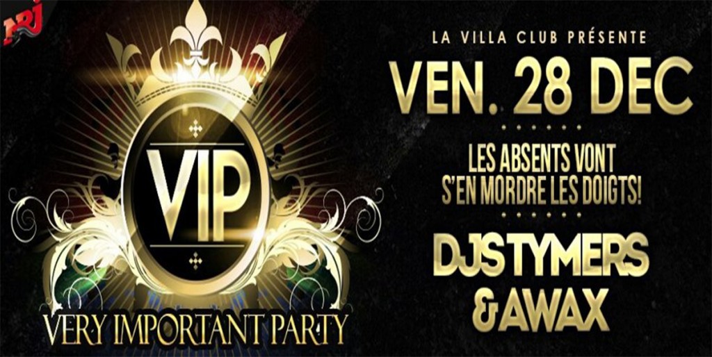 La Villa Club: « VIP – DJ Tymers & Awax » – Réunion le 28 Décembre