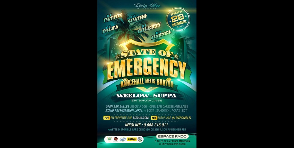 L’Espace Fado: « State Of Emergency – Dancehall Meets Bouyon » – Paris le 28 Décembre